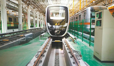 北京中關(guān)村豐臺園企業(yè)交控科技研發(fā)的國內(nèi)首條無人駕駛地鐵燕房線。