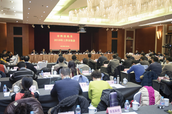 2018年1月5日、8日,上海市科技機(jī)關(guān)召開(kāi)2018年工作討論會(huì)。科技兩委領(lǐng)導(dǎo)及各處室圍繞貫徹落實(shí)黨的十九大精神,進(jìn)一步加強(qiáng)和改進(jìn)基層黨建、人才隊(duì)伍和文化建設(shè),落實(shí)全面從嚴(yán)治黨,奮力開(kāi)創(chuàng)上海科技創(chuàng)新事業(yè)新局面;推進(jìn)具有全球影響力的科技創(chuàng)新中心和科技創(chuàng)新“十三五”規(guī)劃發(fā)展建設(shè);增強(qiáng)干部能力、提高工作績(jī)效等重大全局性工作展開(kāi)了討論并提出了2018年科技創(chuàng)新和黨的建設(shè)工作新思路。