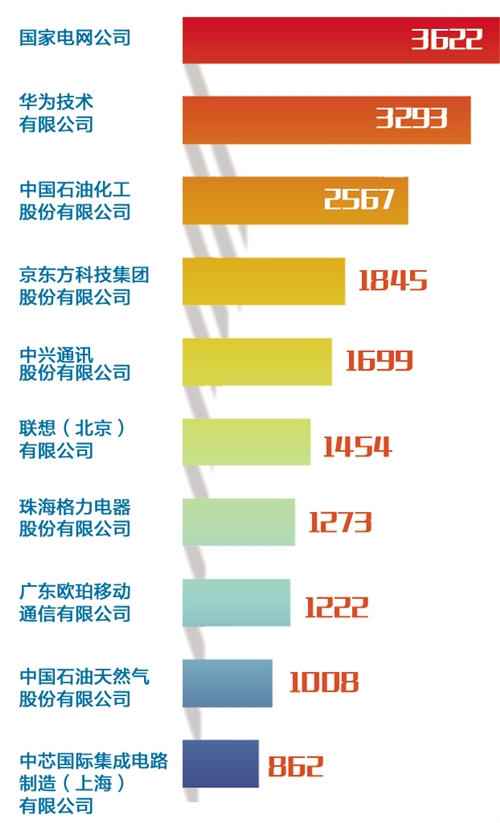 此外,作為研發(fā)密集型企業(yè)的代表,中芯國際集成電路制造(上海)有限公司也憑借授權(quán)862件發(fā)明專利躋身十強(qiáng)。“這表明企業(yè)只要重視創(chuàng)新,加大專利保護(hù)和運(yùn)用,也能后來居上。”蘇平說。
