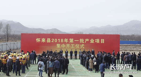 懷來(lái)縣2018年批產(chǎn)業(yè)項(xiàng)目集中開(kāi)工儀式現(xiàn)場(chǎng)。記者張世豪攝