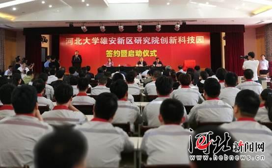 5月4日上午,河北大學(xué)雄安新區(qū)研究院創(chuàng)新科技園簽約暨揭牌儀式在安新縣舉行。記者郭東攝