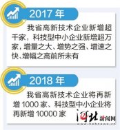 精準(zhǔn)服務(wù)搭好平臺(tái)刺激生長促進(jìn)轉(zhuǎn)化 河北省力促科技創(chuàng)新主體高強(qiáng)度增長 制圖/展茂光 河北新聞網(wǎng)訊(記者郭偉)2018年河北省高新技術(shù)企業(yè)和科技型中小企業(yè)將分別再新增1000家、10000家。記者