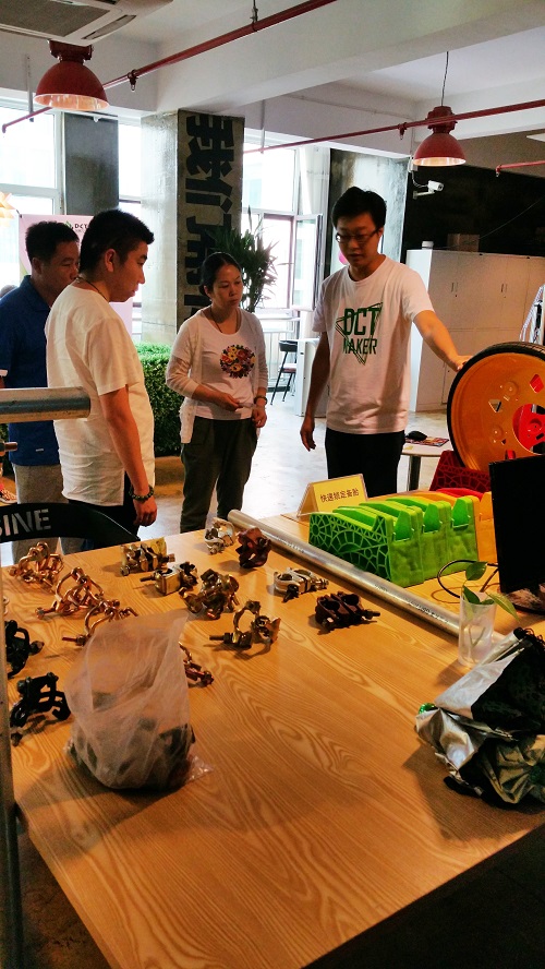 一行人首先來到DCT創(chuàng)客空間一層參觀,王江濤向創(chuàng)客樂園人員介紹了DCT創(chuàng)客空間的服務理念、入駐流程等。