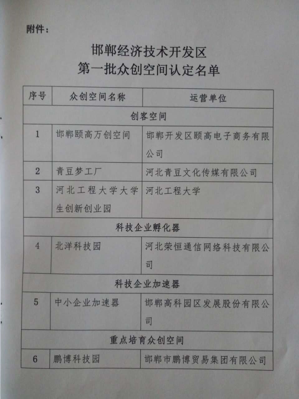 2016年12月6日,邯鄲高科園區(qū)發(fā)展股份有限公司中小企業(yè)加速器項(xiàng)目被邯鄲經(jīng)濟(jì)技術(shù)開發(fā)區(qū)認(rèn)定為“科技企業(yè)加速器”,這對邯鄲高科來說既是機(jī)遇又是挑戰(zhàn),邯鄲高科將借助這個(gè)平臺為更多科技型中小企業(yè)提供更全面、優(yōu)質(zhì)的創(chuàng)業(yè)服務(wù),助力中小企業(yè)茁壯成長。