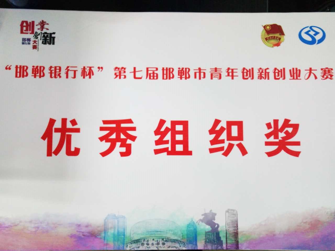 邯鄲高科園區(qū)發(fā)展股份有限公司也榮獲“邯鄲銀行杯”第七屆邯鄲市青年創(chuàng)新創(chuàng)業(yè)大賽優(yōu)秀組織獎。這是共青團邯鄲市委對邯鄲高科在“邯鄲銀行杯”第七屆邯鄲市青年創(chuàng)新創(chuàng)業(yè)大賽中組織工作的肯定和稱贊。