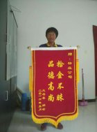 5月11日,邯鄲高科園區(qū)企業(yè)員工鄧云來到物業(yè)處,將一面寫有拾金不昧 品德高尚字樣的錦旗送到保潔工人郭愛手中,表達感激之情。 近日,園區(qū)保潔員郭愛像往常一樣,在園區(qū)樓宇間進行日常