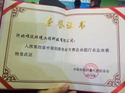 第四屆中國創(chuàng)新創(chuàng)業(yè)大賽新能源及節(jié)能環(huán)保行業(yè)總決賽在西安落下帷幕,邯鄲高科在孵企業(yè)河北唯沃環(huán)境工程科技有限公司以河北分賽區(qū)第二名參加了總決賽,晉級總決賽優(yōu)秀獎,并獲得了現(xiàn)